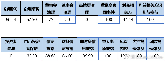 不过也高于交通运输行业的57分,在2021年没有董监负面事件、允许利益相关方参与、信息批露完善、风险内控良好;不过在利益相关方、中小投资者保护、高管层治理方面仍需加强,也未有投资者参与治理以及激励机制。