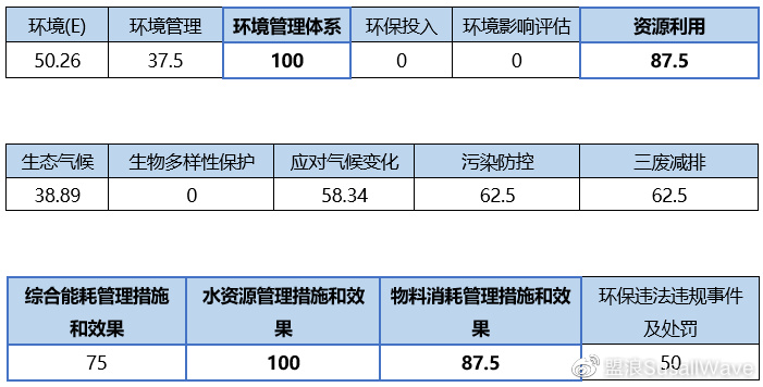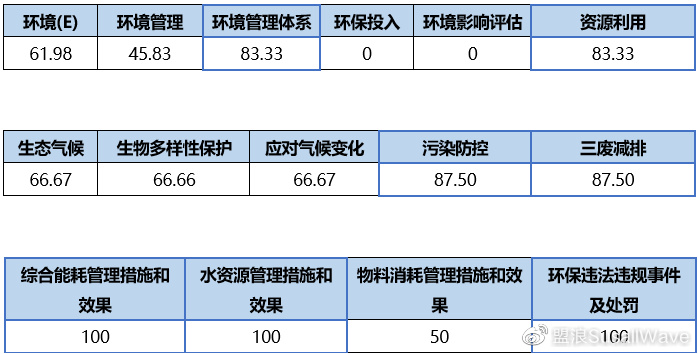 顺丰控股在环境方面得分为50.26,比2021年6月降低2.51分,除了获得100分和0分的项目外,其他都有些微退步。