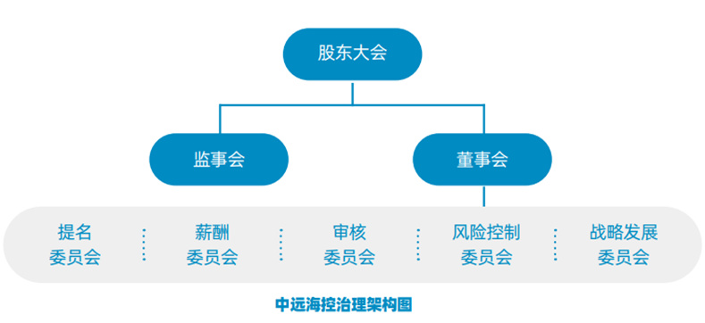 中远海控持续完善企业管治架构与可持续发展管治架构。股东大会为最高决策机构,充分保障股东的权益。股东大会下设董事会与监事会,其中董事会是日常业务的决策机构,由8名成员组成,包含独立非执行董事4名,独立董事占比达到50%,且成员均具备丰富的行业经验,拥有航运、港口管理、船舶设计、工商管理等多领域的专业能力,以更加全面综合的视角和观念来提高企业决策水平;监事会是监督机构,履行对董事会和管理层的双重监督职能。董事会下设五个专业委员会:战略发展委员会、风险控制委员会、审核委员会、薪酬委员会及提名委员会。