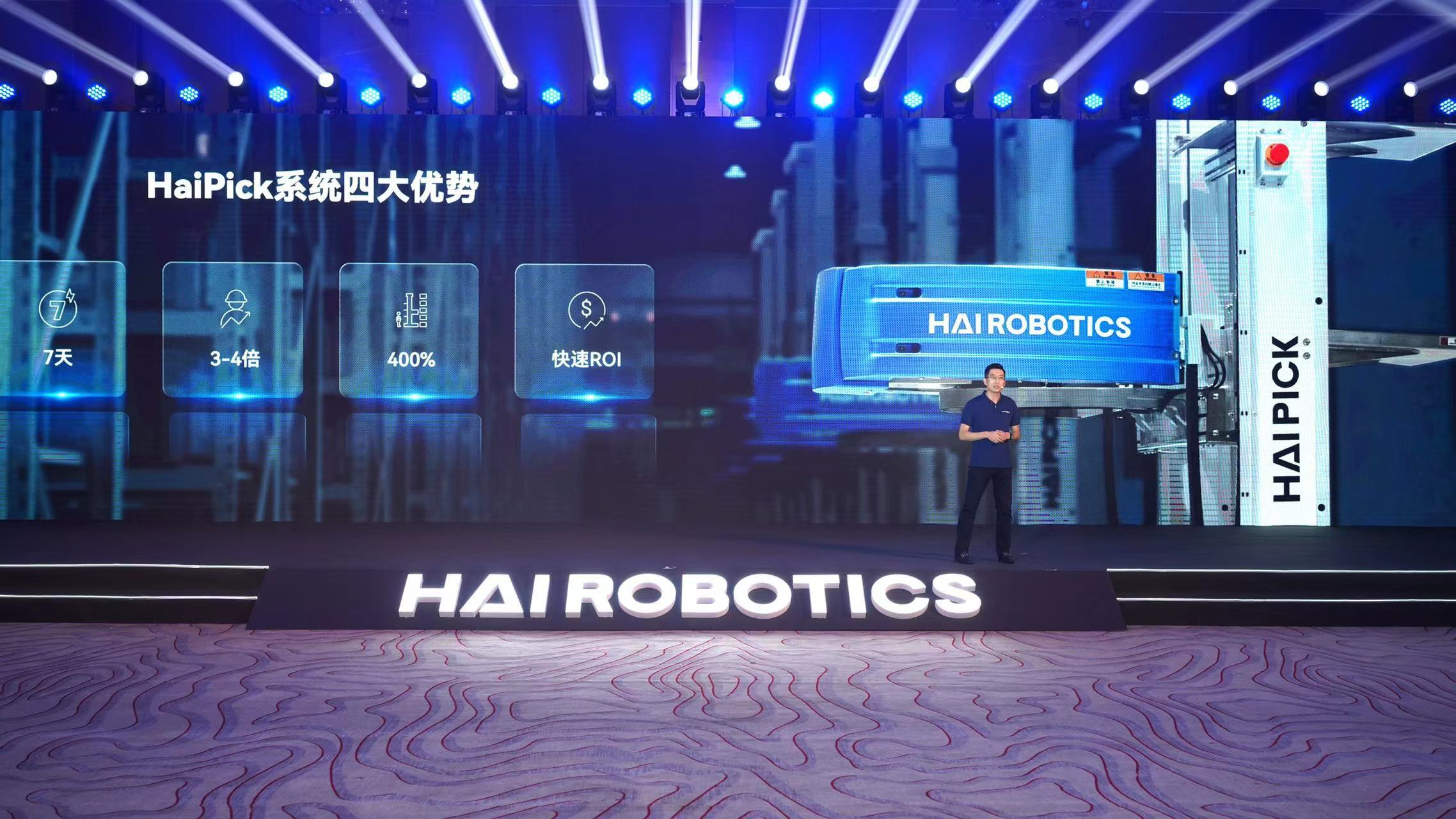 在ACR箱式仓储机器人的身后,是一个完整的HaiPick超级仓储数智化系统,其包括ACR箱式仓储机器人、HaiStation多功能工作站、HaiQ智慧仓储管理平台等。