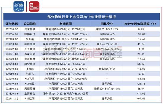 根据目前已公布的业绩预告,物流行业上市公司2019年年度经营业绩忧喜参半。部分公司业绩预喜,营收利润双增长;也有公司因商誉减值、应收账款减值等风险,发生巨额亏损。
