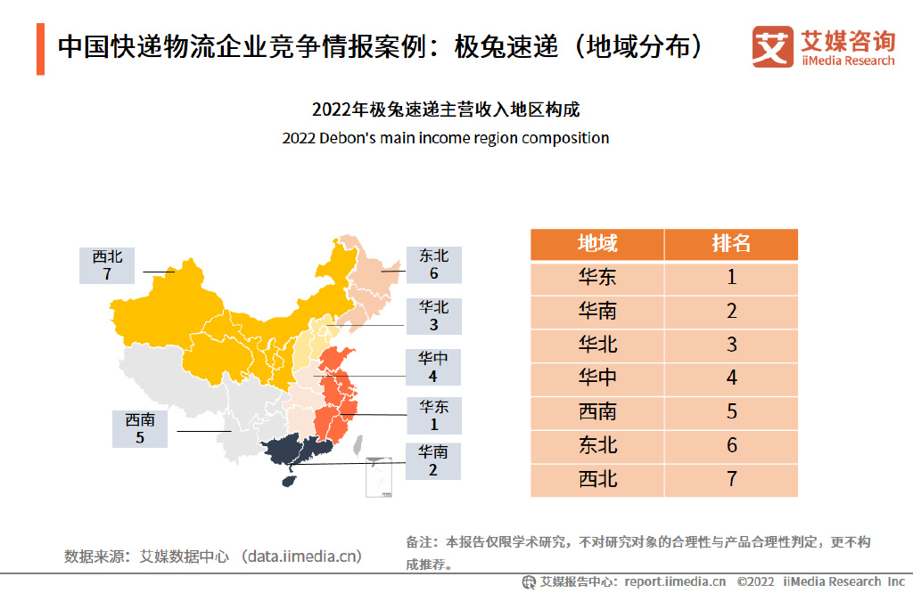 数据显示,2022年,极兔速递在华东地区的营收是最多的;其次是华南地区、华北和华中地区。